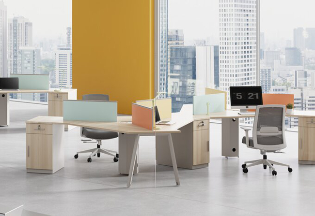 ●与隔断系统融合:工位可灵活搭载隔断与面板,通过组合不同高度、材质的屏风,搭建半封闭专属区域,有效提升视觉与听觉私密性,减少干扰并营造理想专注氛围。